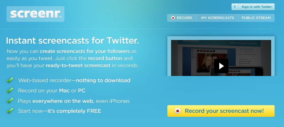 1) Go to http://www.screenr.com/ you can see a yellow button like in this image, press it..
